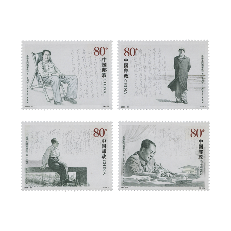 2003年12月6日,为纪念毛泽东诞生110周年,国家邮政局发行了《毛泽东同志诞生一百一十周年》纪念邮票,全套4枚,同时发行小版张1套1版。