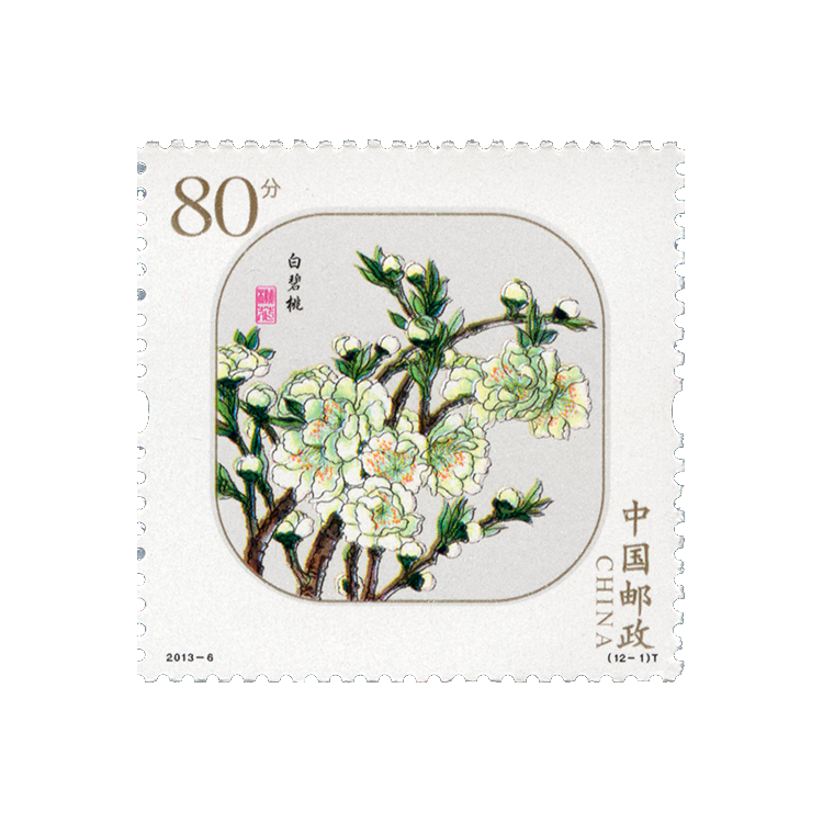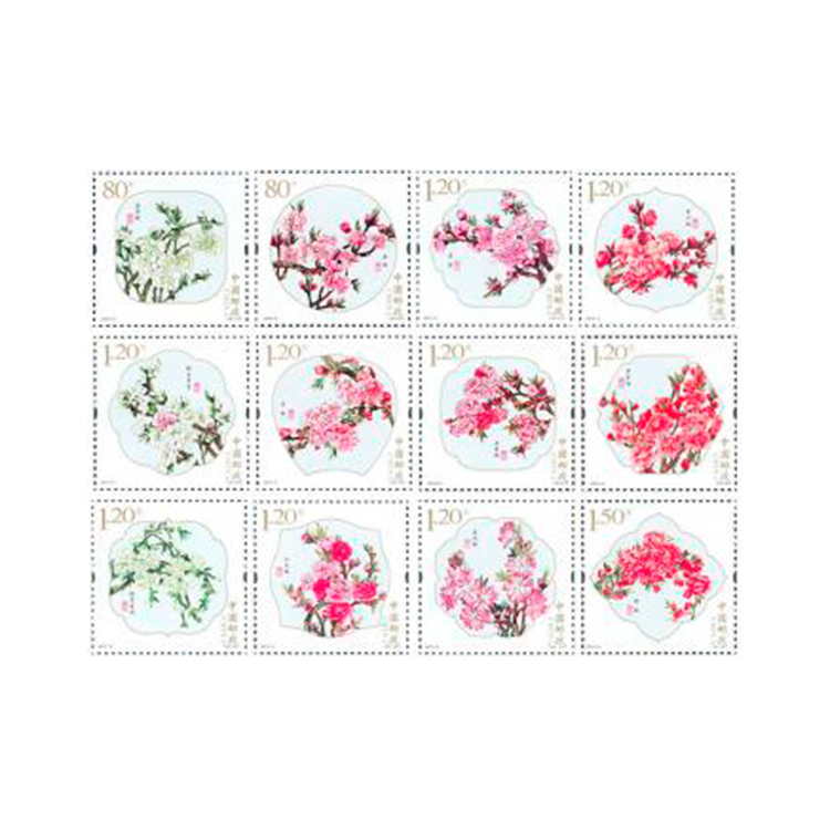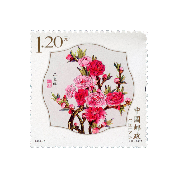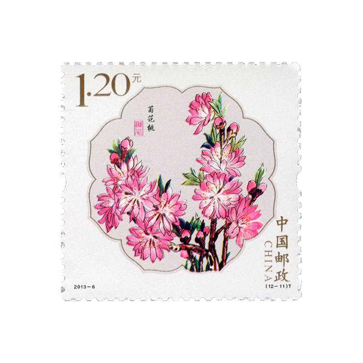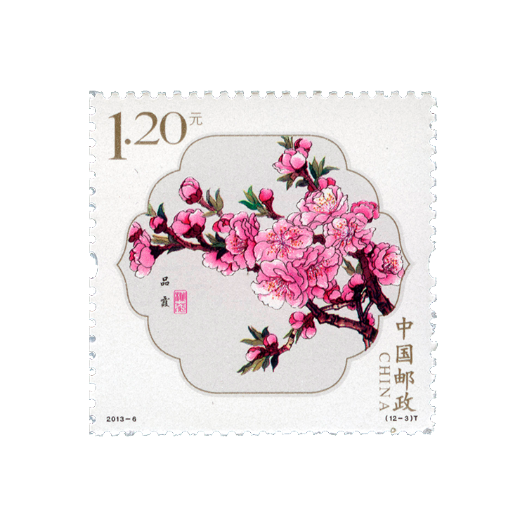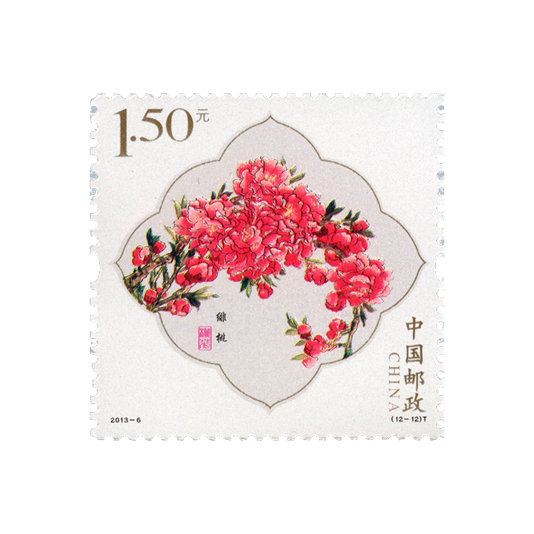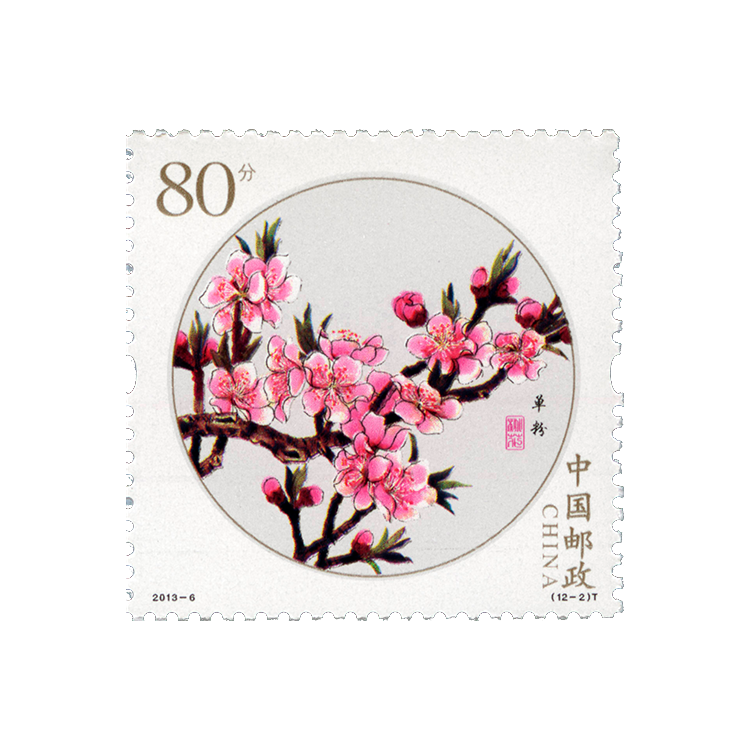 中国邮政定于2013年3月16日发行《桃花》特种邮票1套12枚。