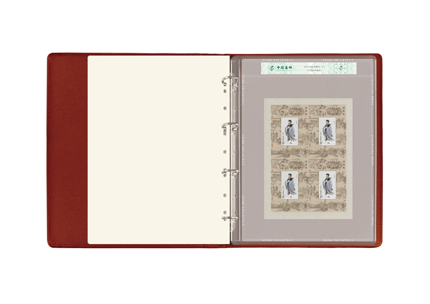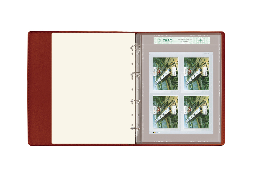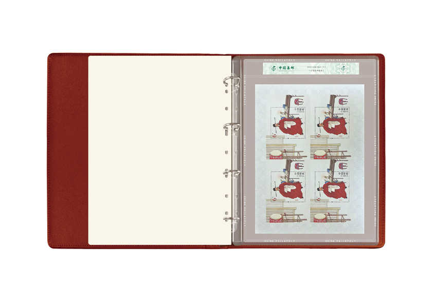 小型张四连张是将四枚图案一样的小型张印制在一个版式内,并衬以边饰。连体小型张不是简单组合,而是一种再创作。为了集中展现这一系列特殊版式邮票,《中华人民共和国小型张四连张》珍藏册产品将中国邮政历年来发行的小型张四连张收录成册(2010年—2018年),每枚小型张四连张均用封装片进行封装并配上防伪标签,采用邮票活页册形式进行装帧,既便于邮票观赏,又更好的保护了邮票。