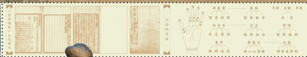 邮票上方陈列温公之学:《资治通鉴》宋版书影与《切韵指掌图》。
