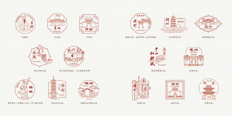 不仅是邮票册,也是邮戳集。苏东坡人生轨迹遍神州,栾城、眉山、开封、凤翔(今属宝鸡)、杭州、密州(今诸城)、徐州、湖州、黄州、颍州(今阜阳)、扬州、定州、惠州、儋州、常州、郏县等地市共同形成了“苏东坡文化”的印迹。本册设计了16款东坡足迹纪念戳,还预留空白区域供消费者实地盖戳。适合在苏轼纪念馆、景点等地销售,配合盖戳服务营销。
