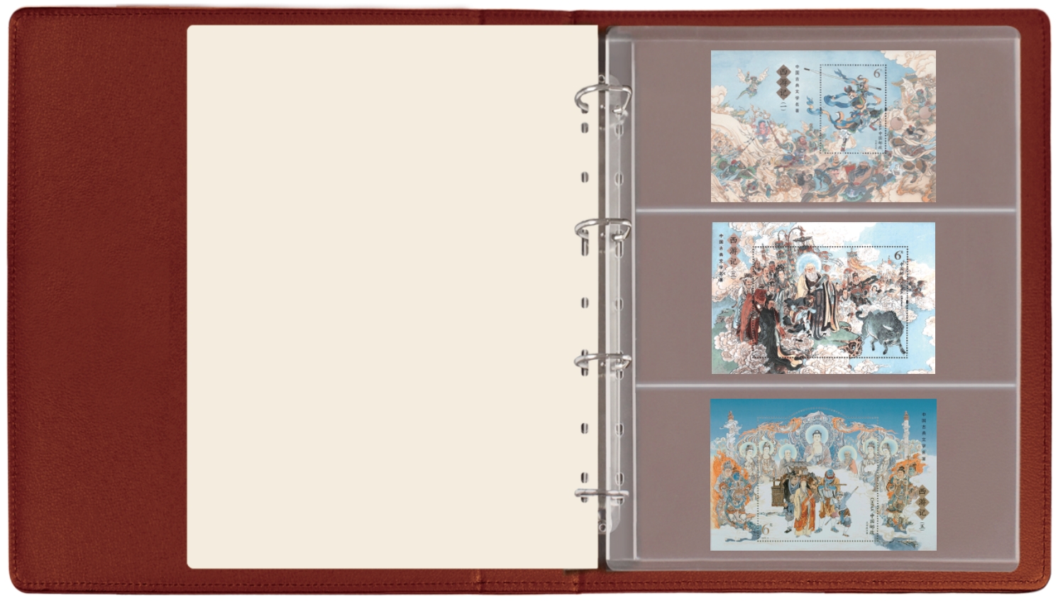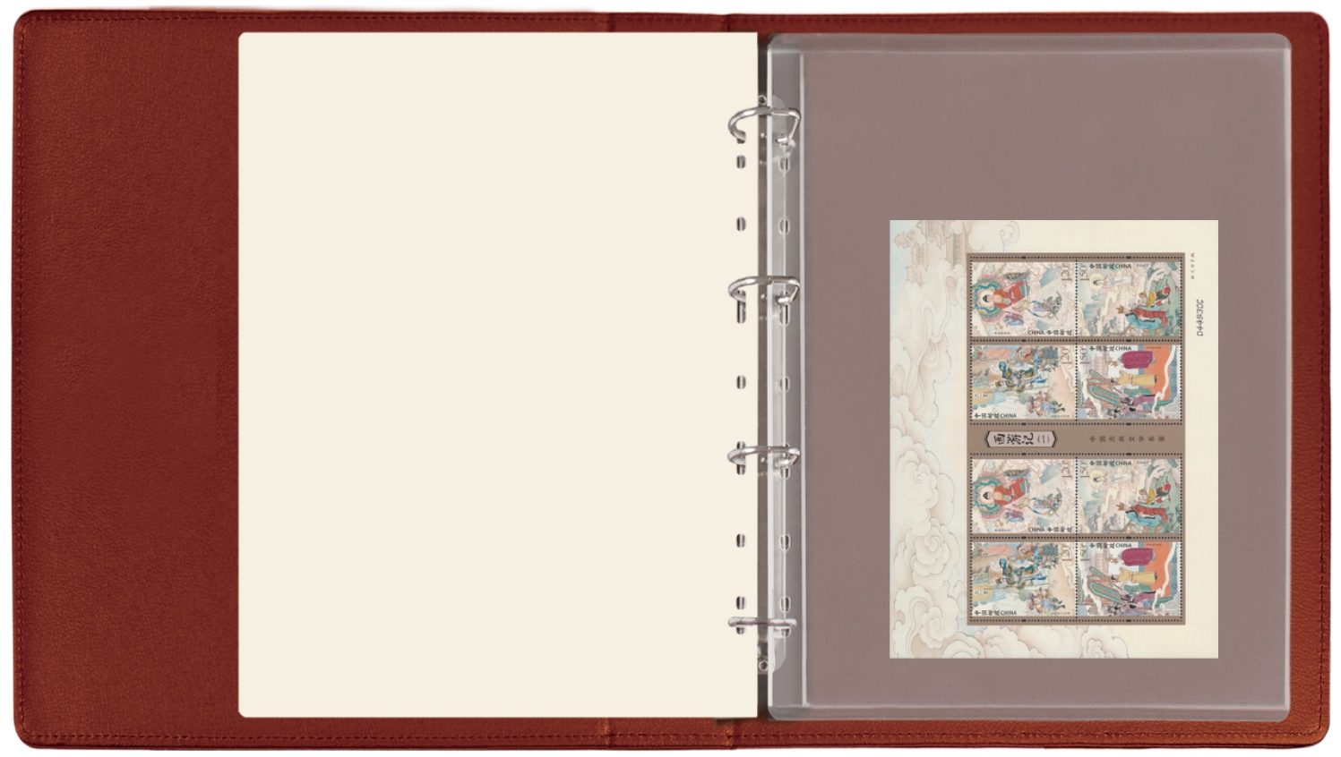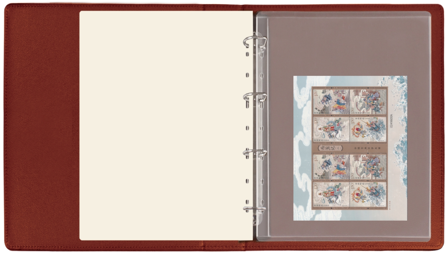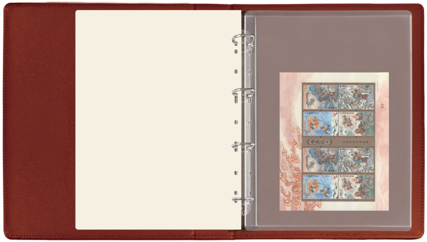产品内含中国邮政自2015年至2023年发行的《中国古典文学名著——<西游记>》一至五组邮票套票、四方连、小型张、版式一、版式二、四方连邮票折和全张邮票折,并使用精美活页册作为包装物,既便于观赏邮票,又对邮票起到很好的保护作用。