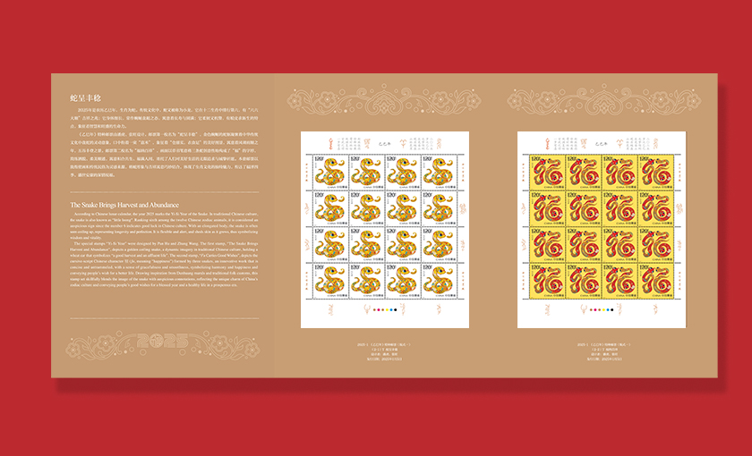 中国集邮有限公司于2025年1月5日发行《蛇呈丰稔》大版折。