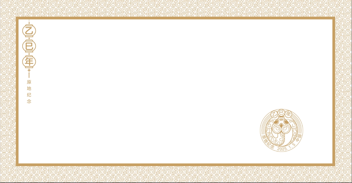 为配合原地邮局在乙巳年的相关活动,中国集邮有限公司于2025年1月5日发行《乙巳年》生肖原地封一枚,贴2025年贺年专用邮票一枚、2025-1《乙巳年》生肖套票。