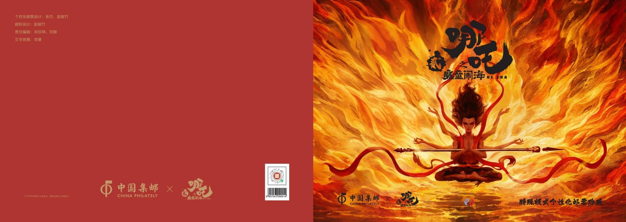 中国集邮有限公司定于2025年6月发行电影《哪吒之魔童闹海》双联张邮折。