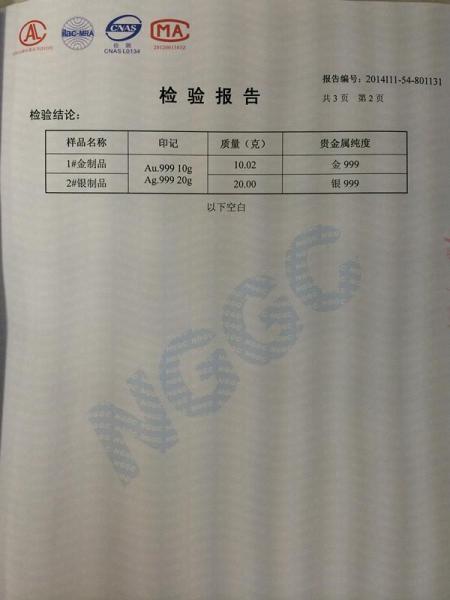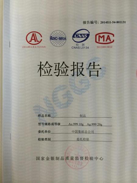 >首页>集邮信息>产品证书(历史)>《红楼梦》邮票金砖检验报告
