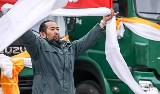 回归车队的那一天,同事为他献上哈达,他却转身把哈达系上了绿色邮车!