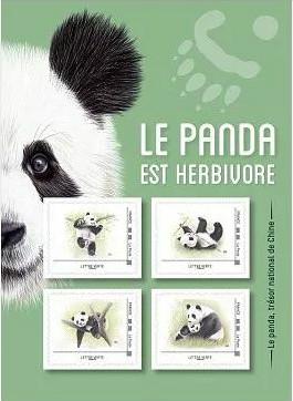 2月16日,法国邮政再次发行“大熊猫”个性化邮票一套4枚(图1)。图案分别为在玩耍的大熊猫和大熊猫母子等。这次发行的大熊猫题材个性化邮票为法国邮政“保护动物”系列个性化邮票的一种。与“大熊猫”个性化邮票同时发行的还有“北极熊”“棕熊”两种个性化邮票。小版张自带不干胶,大熊猫邮票可直接从小版张上取下贴在信封上。小版张的背面印有一片竹林,还印有关于大熊猫的详细法文介绍,主要包括大熊猫的生活习性等。