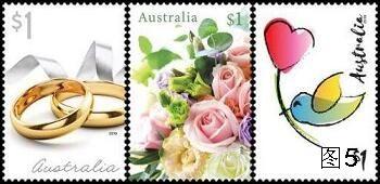澳大利亚的《值得珍视的时刻》特种邮票于2月5日发行,1套8枚(有背胶与自粘型品种,图5为其中3枚背胶型邮票),图案分别为金戒指、爱情鸟、花束、蛋糕、泰迪熊、气球、烟花与白玫瑰,可用于婚礼、生日、毕业、婴儿出生及情人节等值得珍视的时刻;配发有首日封与极限片等邮品,首发纪念邮戳的图案为盒装礼物。