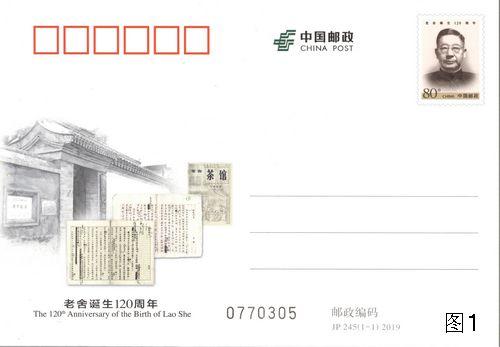 邮资片纪念人民艺术家老舍诞生120周年