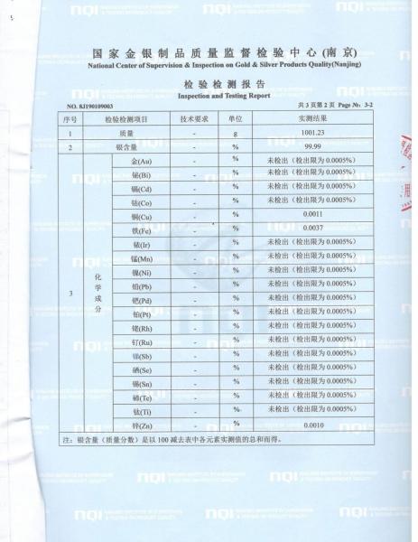 >国家金银制品检验中心报告(传世收藏金猴大银章)
