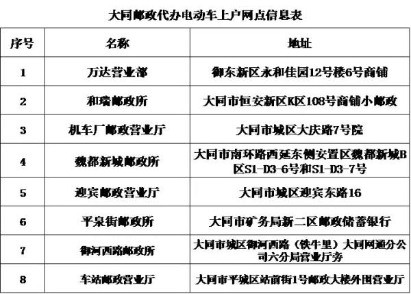 为方便广大群众就近办理公安交管业务,享受“最多跑一次”的便捷服务,大同市公安交警支队与邮政公司联合推出电动车车牌受理、寄递服务。