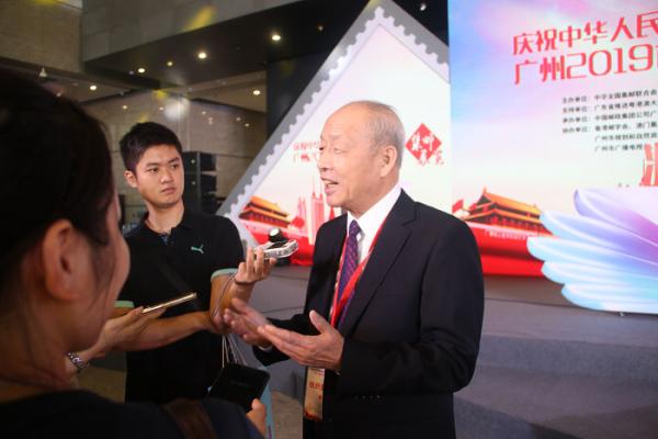 中华全国集邮联合会会长杨利民正在接受采访。