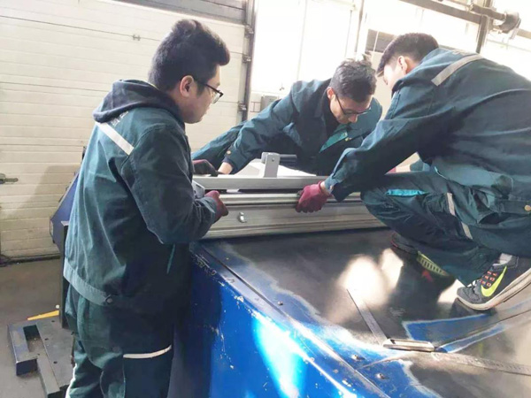图为维修人员正在对传输皮带机进行检修