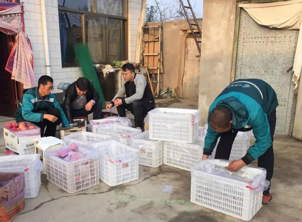 11月7日,临汾邮政员工主动上门,对郭华家的苹果进行套膜、装框、称重、装车……1个半小时之后,700余斤苹果装载完毕,并现场与郭华结算,这才有了开头的一幕。