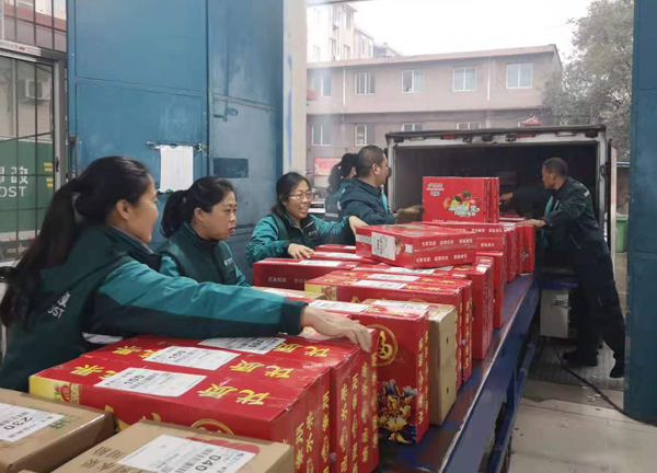 临汾邮政工作人员将苹果邮件装车发运。 成建华摄