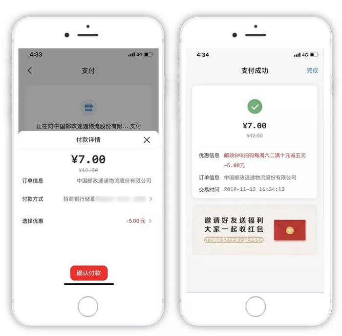 优惠三:EMS联名卡支付福利