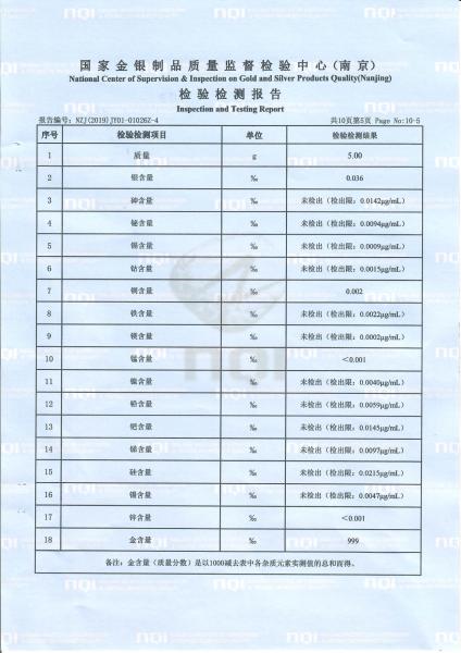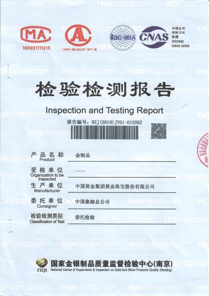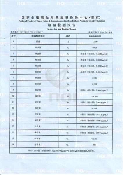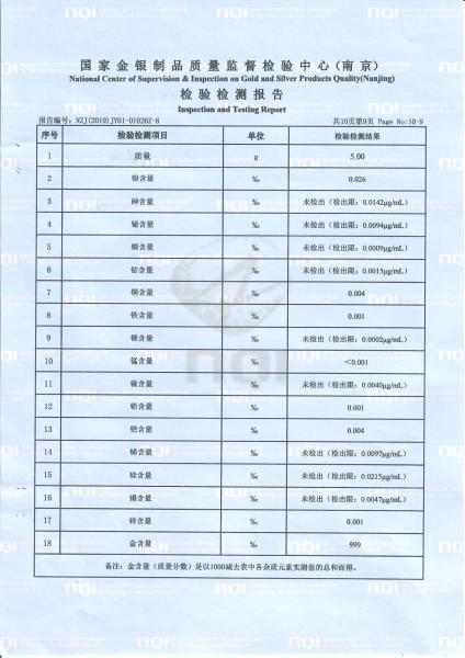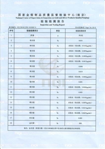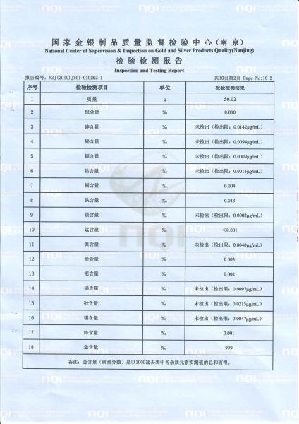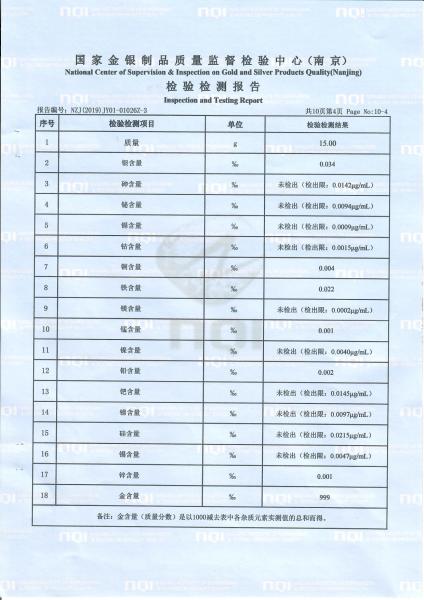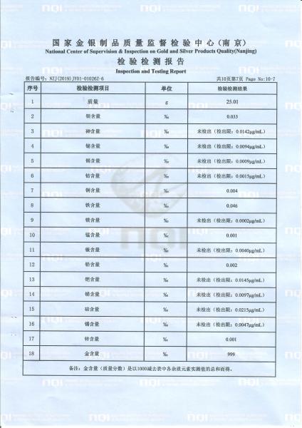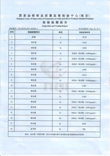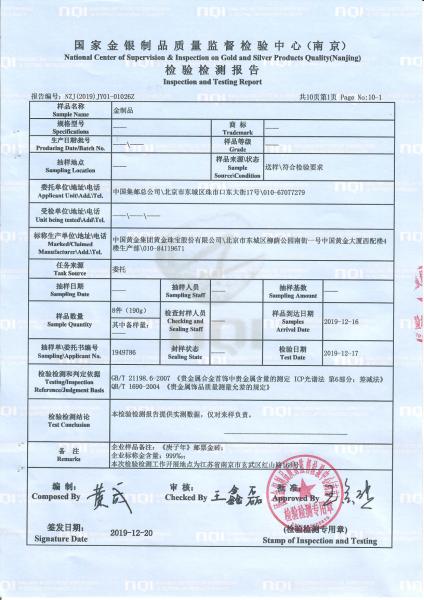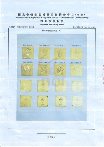 >首页>集邮信息>产品证书(历史)>《庚子年》邮票金砖质检报告