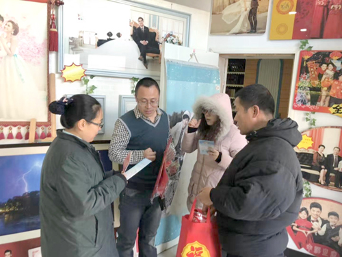 日前,全省邮政“迎春送吉祥·传递晋邮情”跨年走访活动正在进行,各市邮政分公司结合金融跨赛、保险首卖等活动,以增进感情联络、提升服务为主,业务渗透为辅,进行宣传走访。图为大同市广灵县西关邮政支局员工在照相馆走访,并为商户送上春联礼包,预祝照相馆来年生意红红火火。