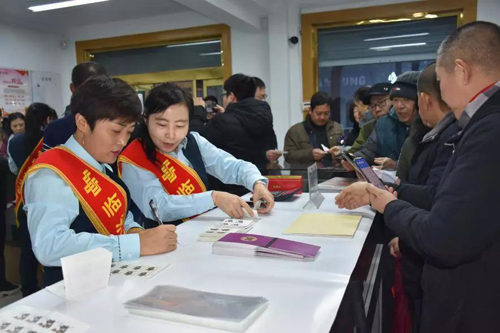 晋城邮政《庚子年》特种邮票首发活动在沁水县及晋城市各集邮营业厅举行。雪天路滑,各营业厅均为客户铺上了红地毯,营业厅内更是暖意浓浓,现场工作人员不时为大家递上热饮,驱散冬日严寒。