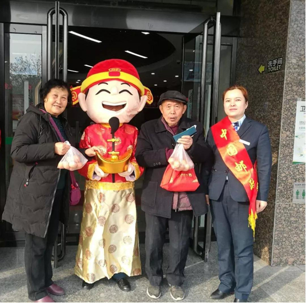 太原市平阳南邮政支局把“财神爷”也请到了网点,前来办业务的客户纷纷想要讨个好彩头,依次与“财神”合影、摸元宝,沾好运。