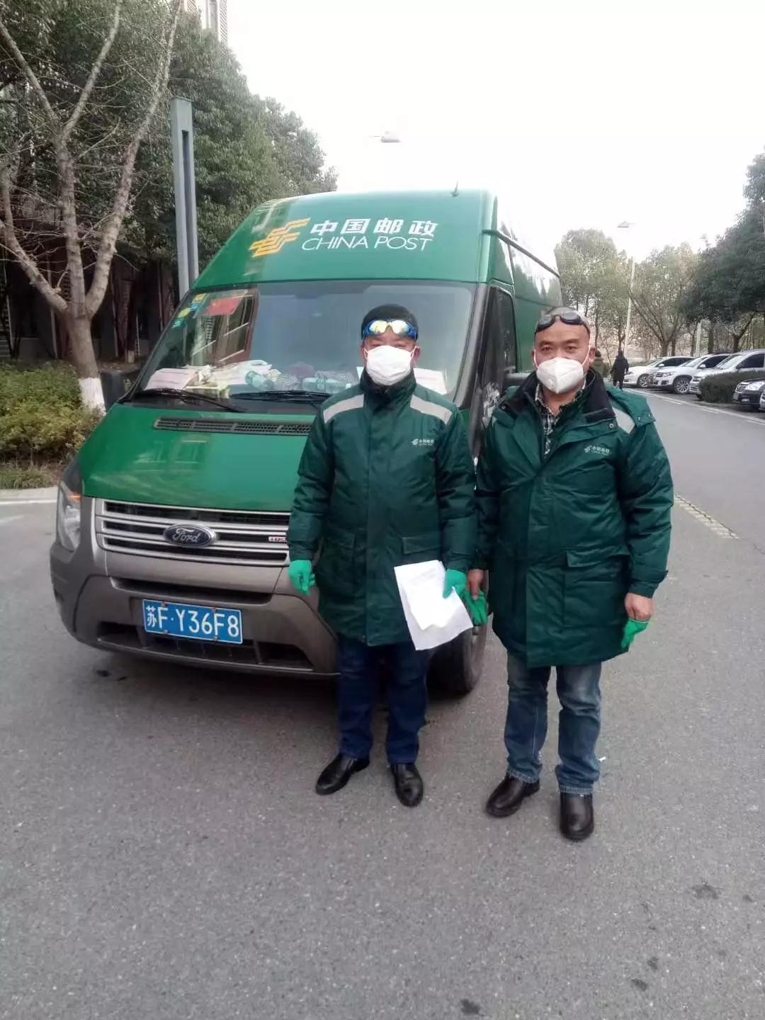 1月27日,连云港市邮政分公司两名驾驶员颜辉、庞振常,从连云港出发,历时14小时,将豪森药业捐赠武汉的第一批物资顺利送达武汉中南医院。