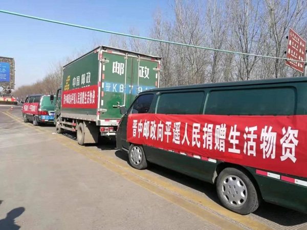 时值疫情防控关键期,为了保障平遥县人民群众生活必需品供应,2月10日中午13时,由晋中邮政总经理郝昌红带队,挂着“中国加油,平遥加油”“晋中邮政向平遥人民捐赠生活物资”等字样条幅的捐赠车队驶向平遥……车上满载着向平遥县人民政府捐赠的价值30336元的653桶食用油。
