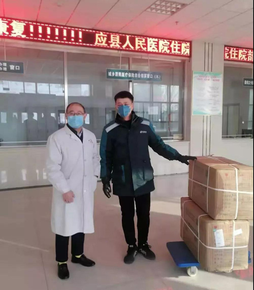 应县邮政投递部揽投员孙建宇为县医院及时投递医疗口罩