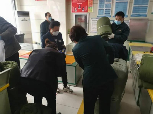被褥的体积大、件数多、份量重,为提高内部处理工作效率,第一时间将爱心物资运送出去,不当班营业员和后台十几位员工也主动来到打包现场进行帮忙,采取小组成员协同配合、各环节流水作业的形式,对爱心包裹进行加速处理。