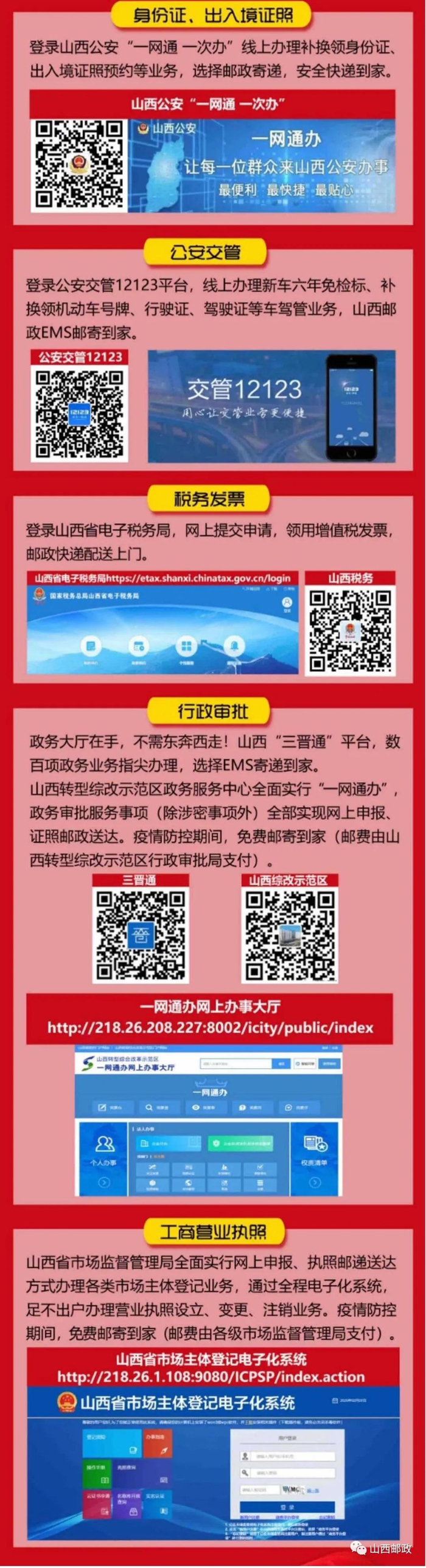 办事企业、群众可通过山西政务服务平台、“三晋通”APP以及移动客户端等线上申请办理,选择邮政寄递送达,真正实现“网上批、快递送、不见面、办成事”。