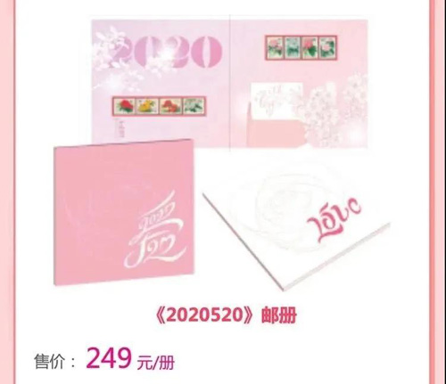 《2020520》邮册。内含《玫瑰》特种邮票大版、《杜鹃花》套票、《海棠花》小版、《芍药》小版、《国家邮票、钱币博览会北京1995》小全张、《花卉》个性化专用邮票套票。邮册设计构思巧妙,以花传情,表达了爱的主题。