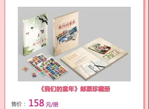 《我们的童年》邮票珍藏册。内含《动画一葫芦兄弟》特种邮票大版,《儿童生活》邮票,《儿童游戏》(一)、(二)邮票和《动画一<大闹天宮>》邮票等与童年相关的邮票合集。产品以“80后童年的影音”为创意点,选择了那个年代的经典动画片、经典儿歌、经典电视剧和经典电影等元素,封面设计还原80年代人教版《语文》课本的感觉,融入了老旧童年物件,呼应“我们童年美好的记忆”主题,是一款具有浓郁怀旧情结的文创邮品套装,附赠《葫芦兄弟》洋画(洋片)》。