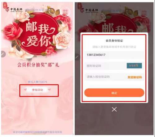 1、点击“参加活动”,填写您登录集邮商城的手机号码等个人信息进行实名验证(若验证失败,客户可按提示填写个人资料进行注册认证)。