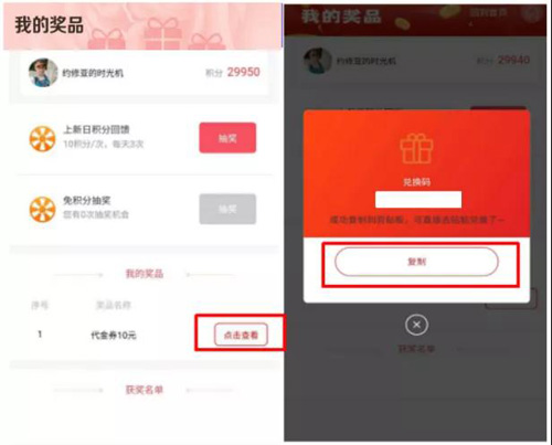 3、用户每天可参与3次积分抽奖,每次消耗10积分,中奖后需及时填写收货地址或复制保存券码等信息。