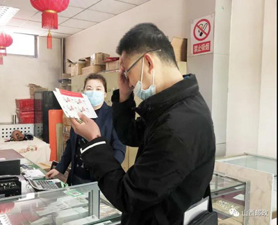 ▲晋城市阳城县邮政分公司新阳支局迎来了前来购买邮票的客户。