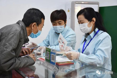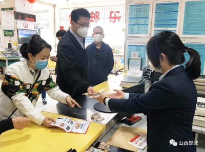 ▲长治市潞州区邮政分公司英雄路营业所为客户提供服务。