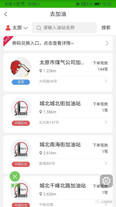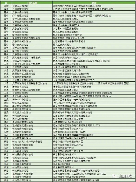 活动油站:山西省全部中石化加油站点,部分壳牌加油站点。 (点击下表查看)