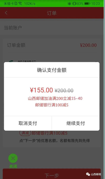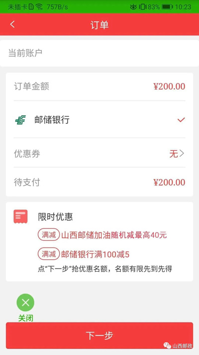通过邮储手机银行支付,