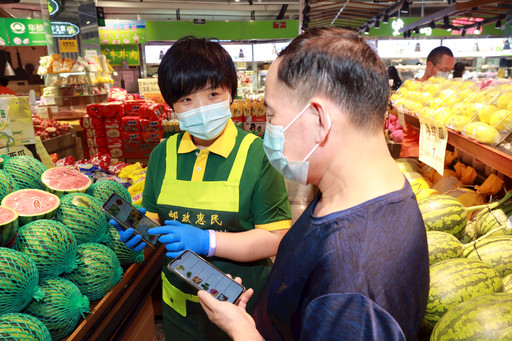 近日,北京连续出现新冠肺炎确诊病例,百姓生活受到影响。北京邮政一方面全力做好疫情防控,另一方面利用线下28家邮政惠民生活驿站、线上“邮政菜单”微信服务号,为市民不间断提供新鲜果蔬供货及同城配送服务。目前,北京邮政惠民生活驿站每日上架近50种新鲜果蔬,同时向市民供应米面粮油、速冻食品等生活快消品;“邮政菜单”微信服务号线上渠道根据应季需求,每日动态供应近50种基地直采蔬菜及20余种水果。针对微信下单的市民,北京邮政提供“无接触式”配送服务。图为邮政惠民生活驿站工作人员向市民介绍“邮政菜单”微信服务号的线上功能。 □记者  杨光  摄影报道