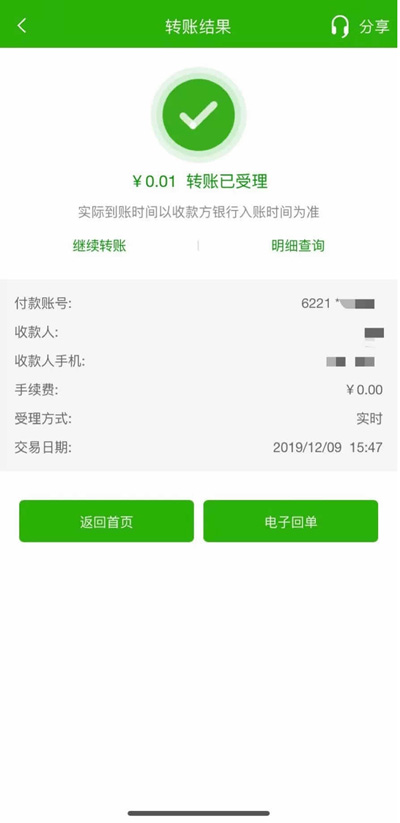操作便捷:转账时无需提供冗长的账号,通过姓名、手机号轻松完成跨行收款。