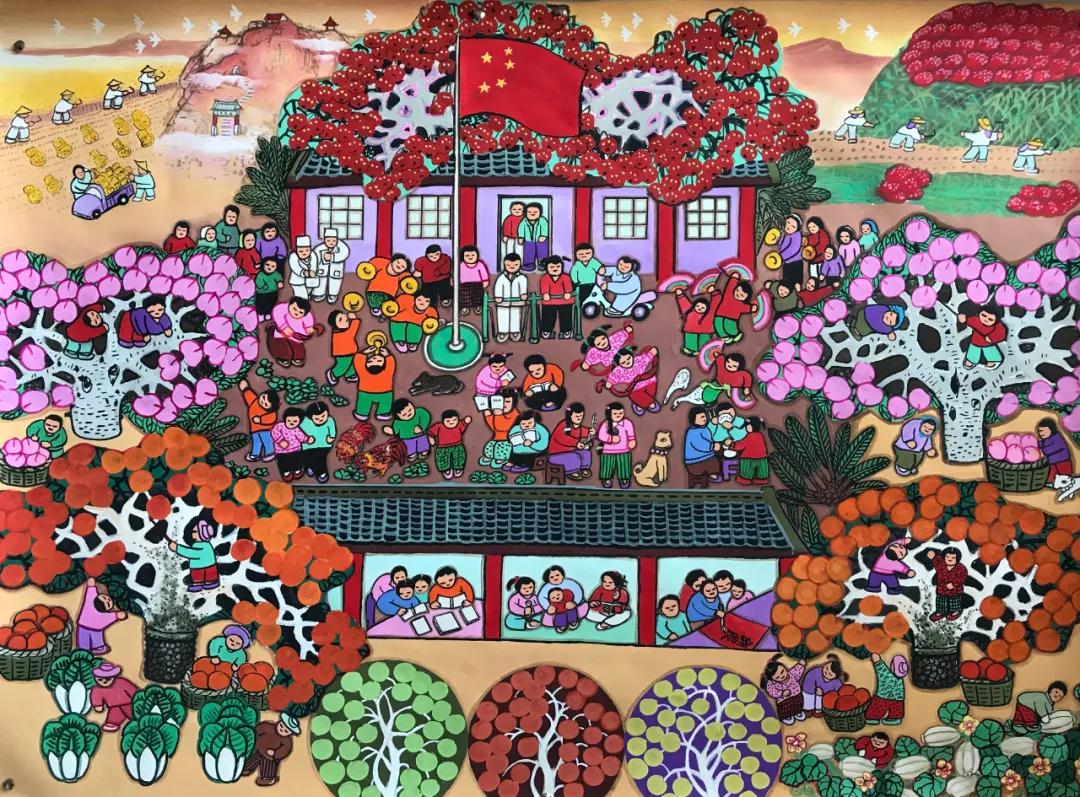 习近平总书记指出:“中国实现了快速发展和大规模减贫同步,贫困人口共享改革发展成果,这是一个了不起的人间奇迹。”当代中国正在书写“人类历史上最成功的脱贫故事”,全面小康的光明前景就在前方,“到处都是活跃的创造,到处都是日新月异的进步”,中国大踏步前行的信心从来没有如此充足饱满,中国人民的精神从来没有如此昂扬焕发,这些都为农民画创作者放歌新时代、描绘新时代提供了充沛自信和丰富灵感。而农民画活力迸发、各地农民画乡不断涌现,正是中国经济繁荣发展、社会安定有序、人民安居乐业的生动注脚。
