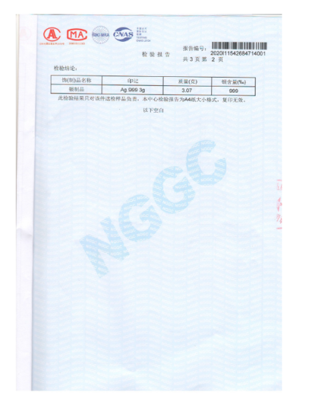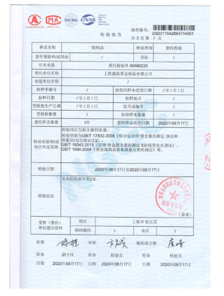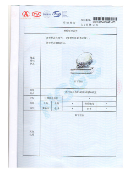 >首页>集邮信息>产品证书(历史)>《紫禁呈祥 四季安康》银封检验报告