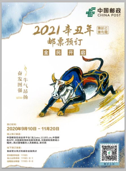 此外,2021年邮票预订还首次推出“以邮会友”和“邮福同享”预订优惠活动,用户添加网点营销服务人员企业微信好友,或邀请亲朋好友组队预订,均有机会参加抽奖,赢取2021年邮票大小版预订和生肖大小版购买资格,详情可咨询各网点营销服务人员或关注中国邮政在线业务平台。