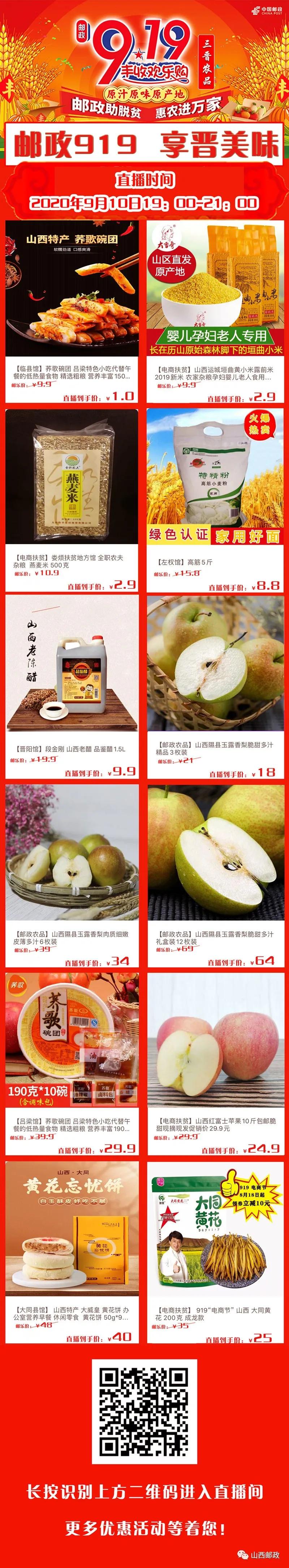 晚7点!邮政919 享“晋” 美味山西专场直播,我们不见不散!