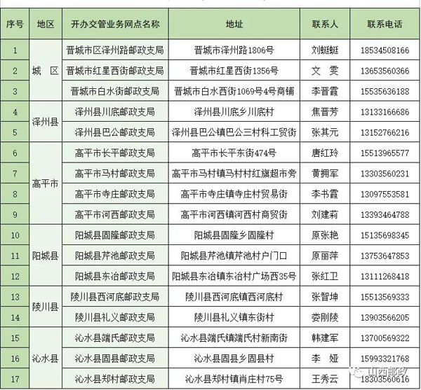 即日起,涉及到驾驶证、机动车等15项与车管相关的业务,晋城市民都可在晋城市区及县域地区的邮政营业厅办理。