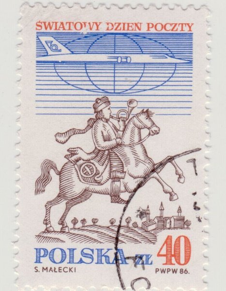 波兰1986年发行“世界邮政日”昔日骑马邮递员和飞机邮票