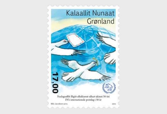 格陵兰岛2019年发行纪念第50届“世界邮政日”邮票