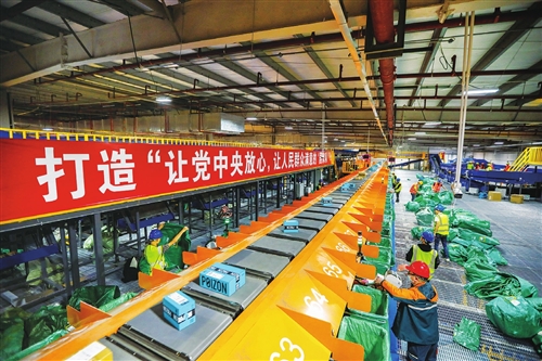 经过生产场地扩建和工艺流程改造,上海邮政松江洞泾处理中心峰值处理能力达110万件/天。□许雨舟 摄