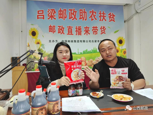 “粉丝宝宝们,欢迎来到吕梁邮政邮乐助农直播间,今天进入直播间的伙伴们,都可以享受到我们的三重福利,咱们吕梁当地特色助农产品,保证大家吃了还想吃.....”11月9日,随着两位主播充满激情地开场,吕梁邮政在邮乐平台开通的“脱贫助农”专场直播开始了。