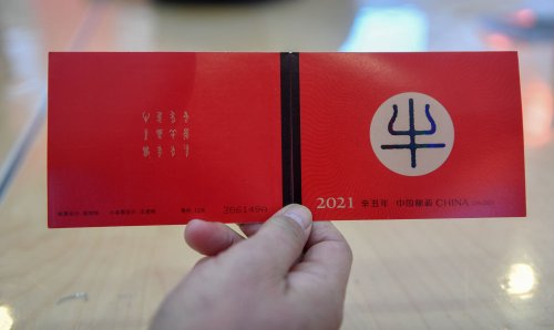 当日,中国邮政发行《辛丑年》特种邮票1套2枚,图案分别为“奋发图强”“牛年大吉”。